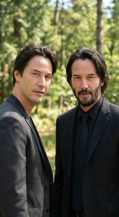 Framing: medium shot (waist-up), both fully visible in frame, balanced composition. Environment: realistic outdoor setting, clean background, no extra people. Lighting: identical lighting for both, consistent shadows, natural daylight. Ultra realistic, seamless, 4K.