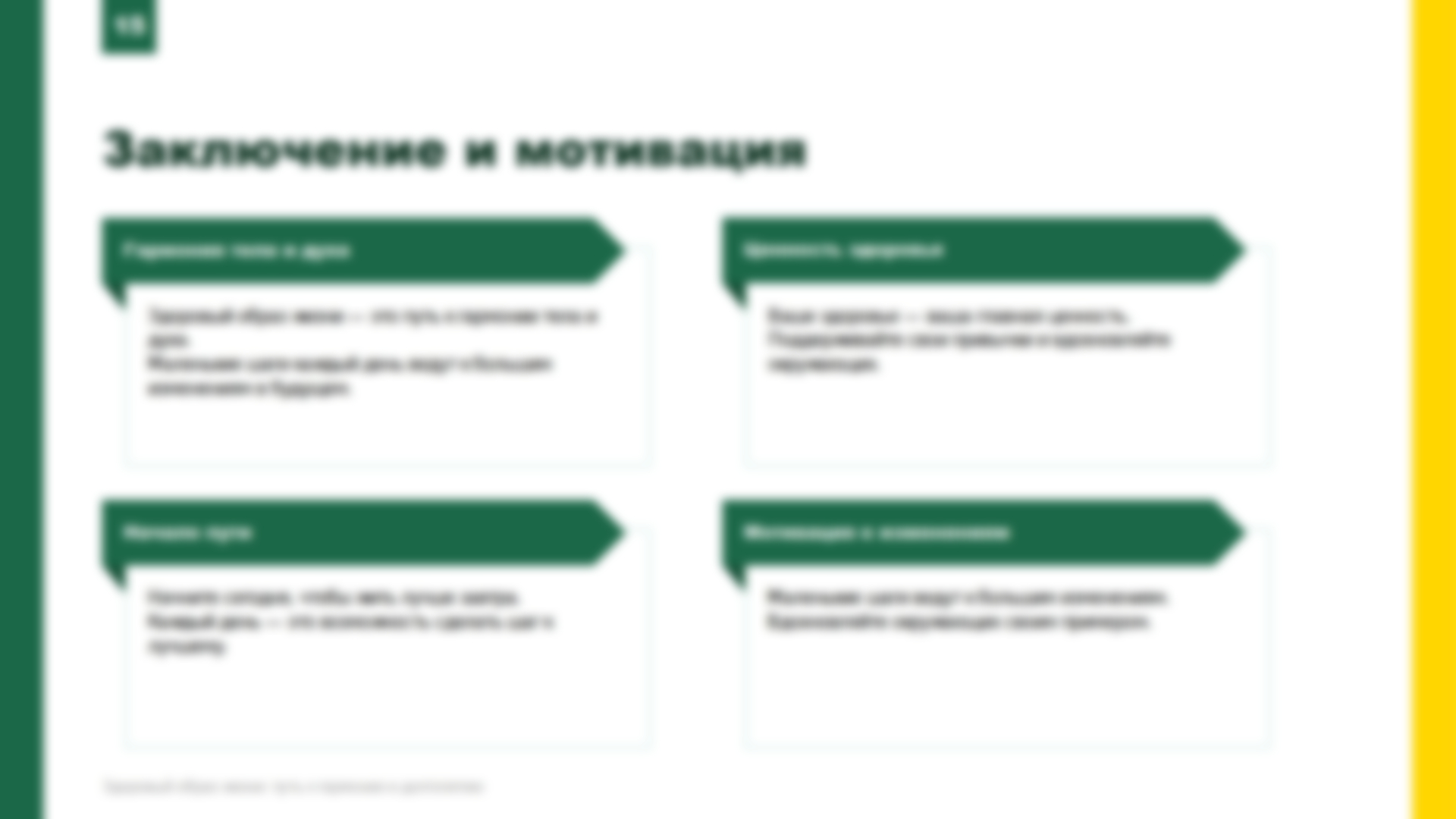 Здоровый образ жизни — это не временная диета или модное увлечение, а осознанный выбор, который формирует качество нашей жизни на годы вперед. Гармония тела и духа, энергия для реализации целей и активное долголетие — всё это становится реальностью, когда мы последовательно заботимся о себе.