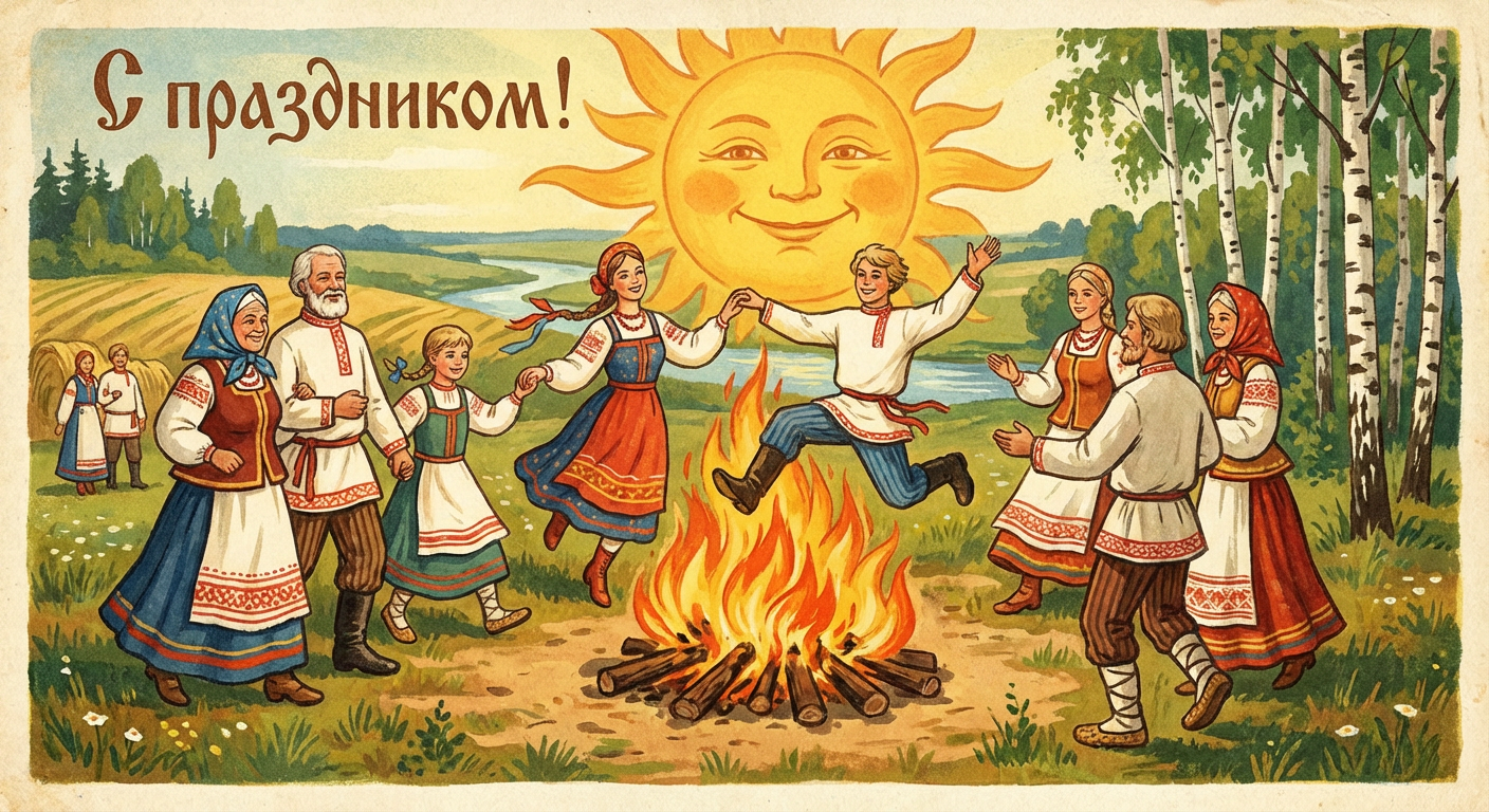 В славянской культуре летнее солнцестояние тесно связано с праздником Купалы. Люди разжигали костры, через которые прыгали для очищения, плели венки из полевых цветов и пускали их по воде, собирали целебные травы, которые в этот день считались особенно могущественными. Молодёжь водила хороводы и пела песни, встречая самую короткую ночь в году.