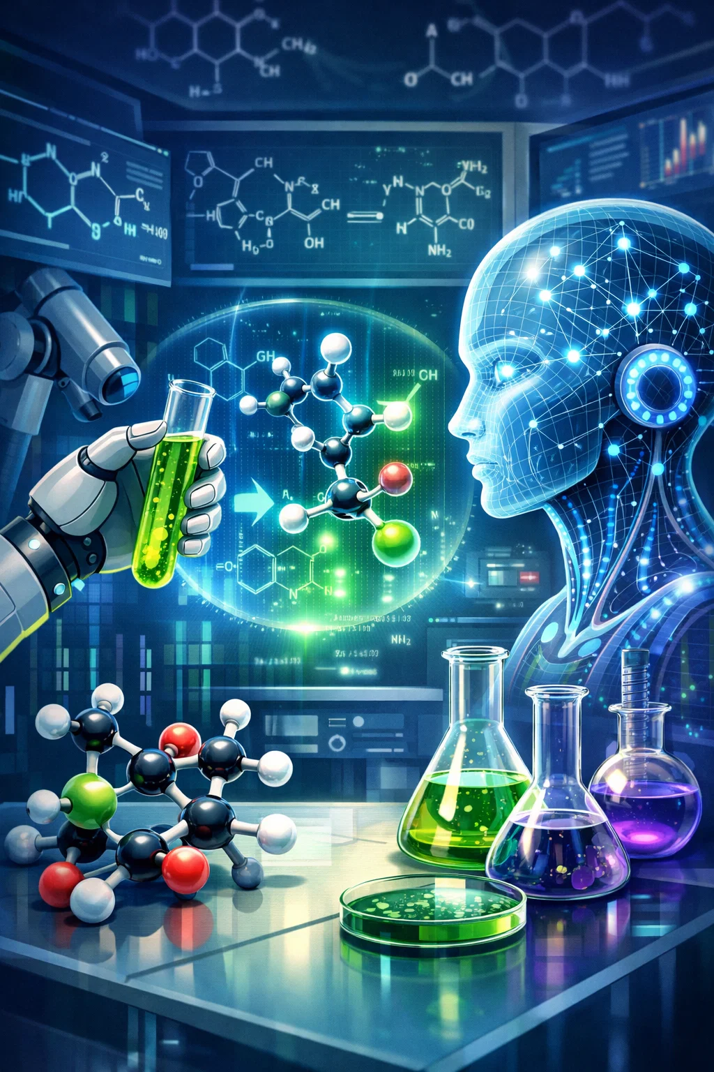 AI берет известную массу вещества, анализирует продукты реакции (CO₂, H₂O), рассчитывает количество атомов углерода и водорода, определяет молекулярную формулу.
